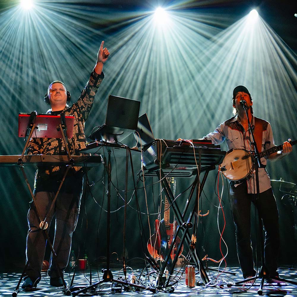 Based in the rustic Kootenay mountains of Western Canada, Nathan Gurley and Sean Rodman of nationally renowned electro-folk duo Moontricks draw inspiration from the ongoing cycles of the natural world. Both volatile and constant—like nature’s best offerings—the band finds solace and beauty in the fusion of seemingly disparate elements. There’s a kind of technicolor campfire quality to their uniquely hybrid sound: Each track is steeped in tradition and polished with a futuristic sheen, mixing organic folk, roots rock, and old-time blues with modern electronic production. Since its initial release, the band’s breakout hit “Home” has reached over 10 million streaming plays, and their original tracks have been licensed for a wide range of television networks, including Netflix and Fox Sports. With the release of their debut full-length album Currents, the duo reveals an ever-evolving, cohesive blend of introspective writing, soulful, gritty blues, boot-stomping basslines, and intricate electronic arrangements.
